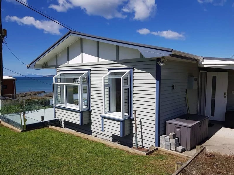 Heat Pump (heater/aircon), 2 carparks (tandem) and lovely sea views.