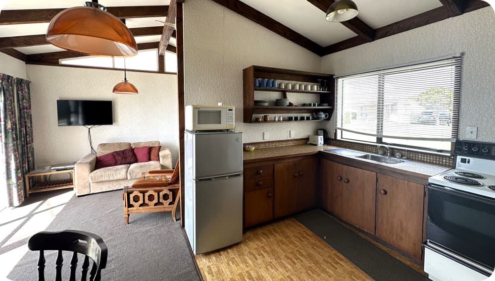 Sleeps 5, great view, garage and loads of extra storage below. Has been a family Bach for many years.